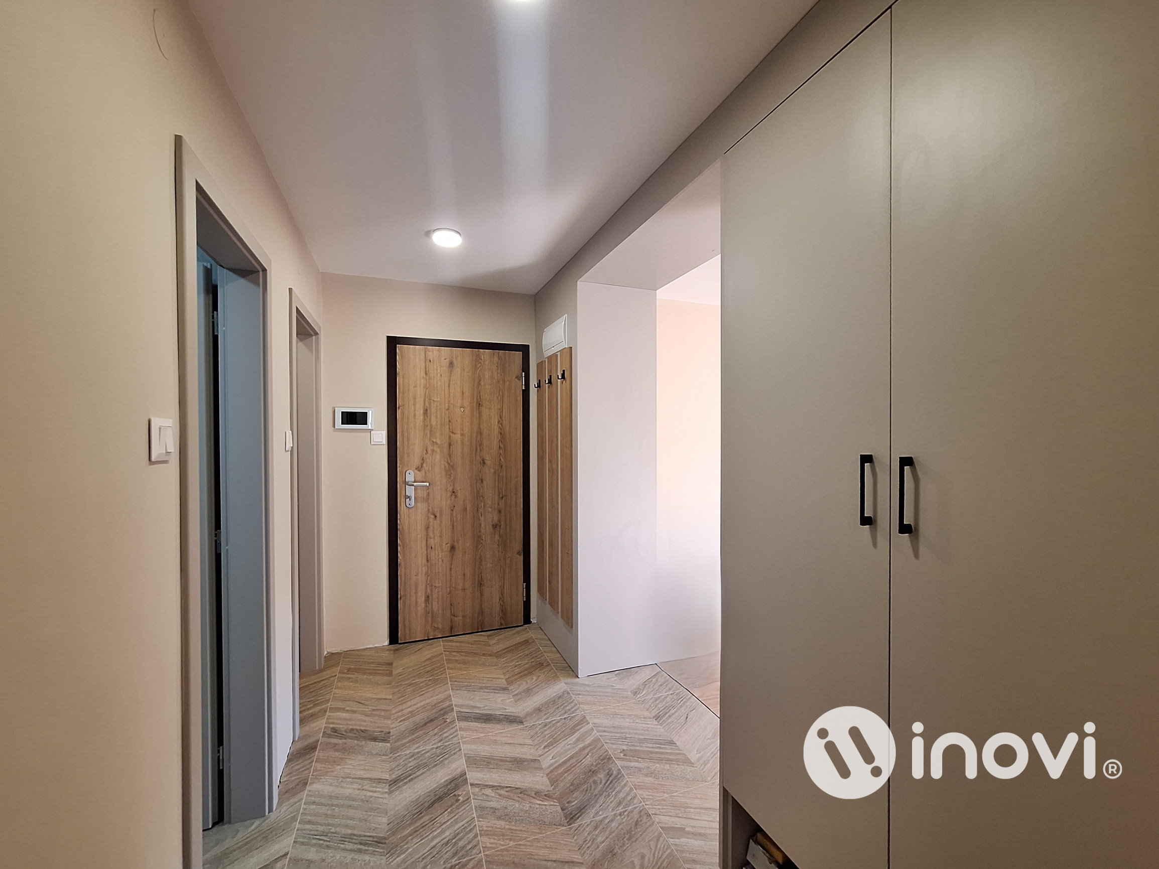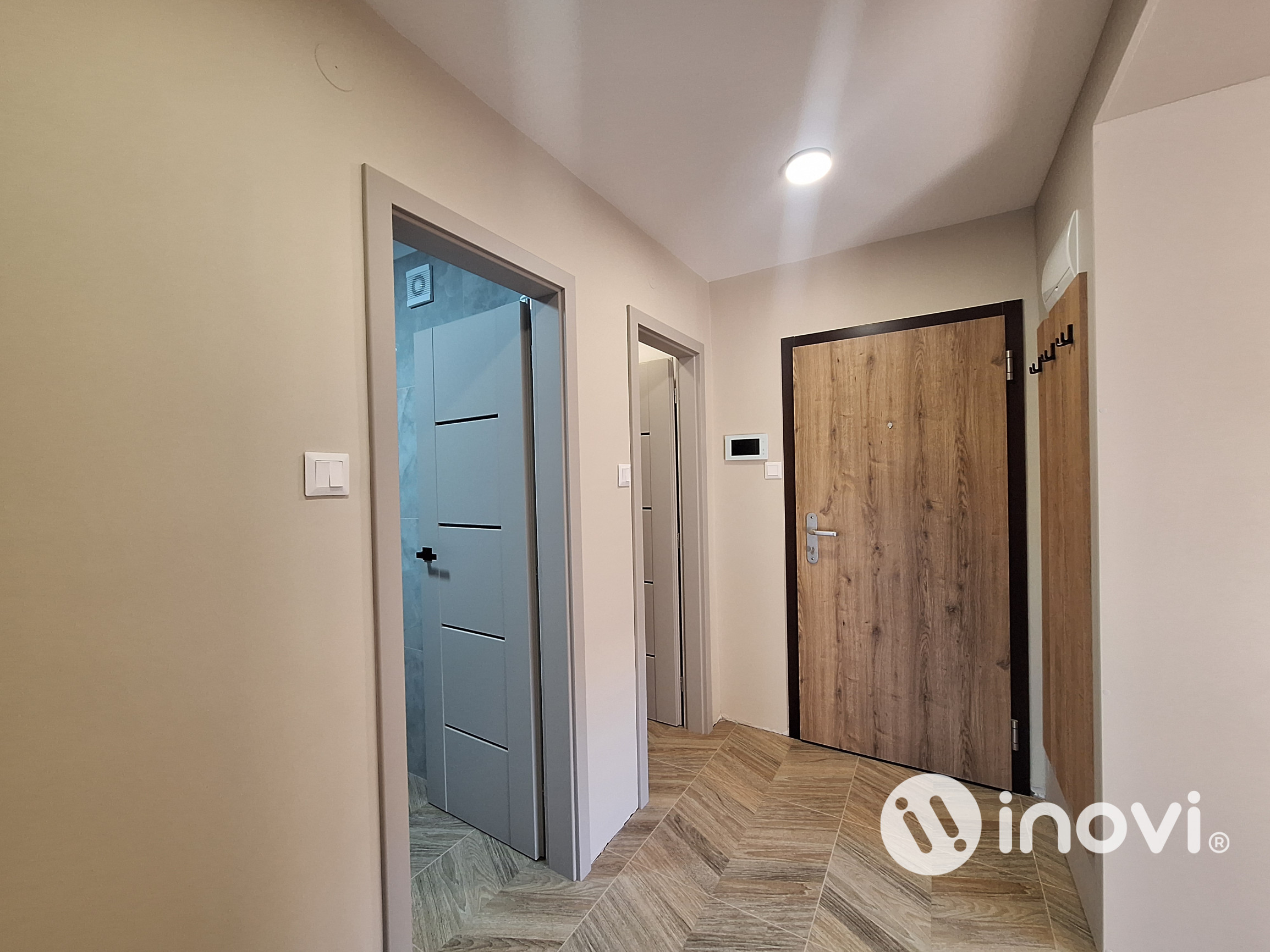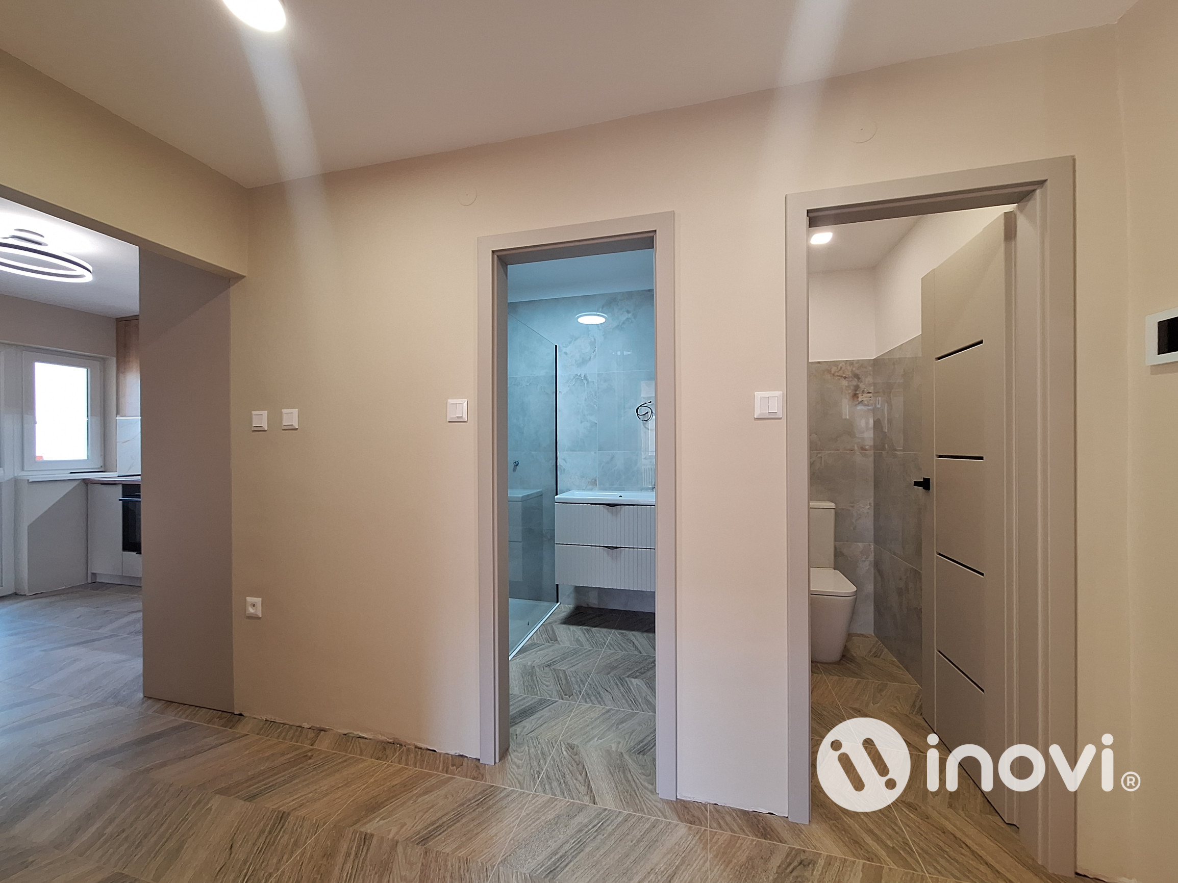 Rekonštrukcia: veľmi kvalitná kompletná v r. 2026, vymenená elektroinštalácia, vodoinštalácia, odpady, nové stierky, laminátové podlahy v kombinácii s keramickou dlažbou, plastové okná, bezpečnostné vchodové dvere, interiérové dvere s obložkami, keramické obklady v kúpeľni a toalete, nová sanita, kuchynská linka so vstavanými spotrebičmi (indukčná varná doska, teplovzdušná rúra, odsávač pár, umývačka riadu, chladnička s mrazničkou), vstavaná šatníková skriňa v chodbe, videovrátnik, optický internet